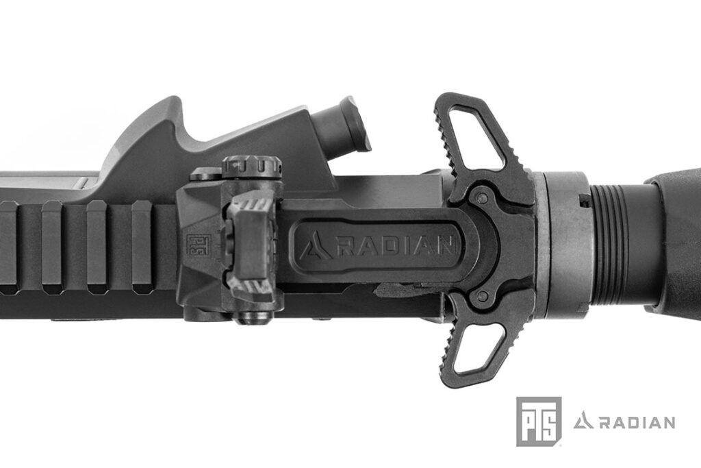 The PTS Radian Model 1 Gas Blow Back Rifle is a truly innovative rifle in both form and function. Firstly, the proprietary M-LOK compatible rail smoothly blends with the uniquely designed proprietary billet style upper receiver thus making the entire upper receiver assembly ultra-rigid. Installed in the upper receiver is the Radian Raptor ambidextrous charging handle. The billet style Radian lower receiver features an integral enlarged trigger guard, a flared magwell, and the ambidextrous Talon safety selector. Additionally, the Radian receiver incorporates the revolutionary Radian Weapons patented A-DAC (Ambidextrous Dual Action Control) which allows right hand shooters to easily lock the bolt to the rear without taking their hand off the fire control. To hold the bolt back using the A-DAC, simply pull the Raptor charging handle to the rear, depress the right side magazine release button, and then release the charging handle. A paddle above the right side of the ambidextrous mag release allows the right hand shooter to release the bolt forward with their trigger finger thus saving precious fractions of a second in getting the gun back into action. Left hand shooters have the same control benefit of the ambidextrous mag release as well as an enlarged bolt release/bolt lock paddle.